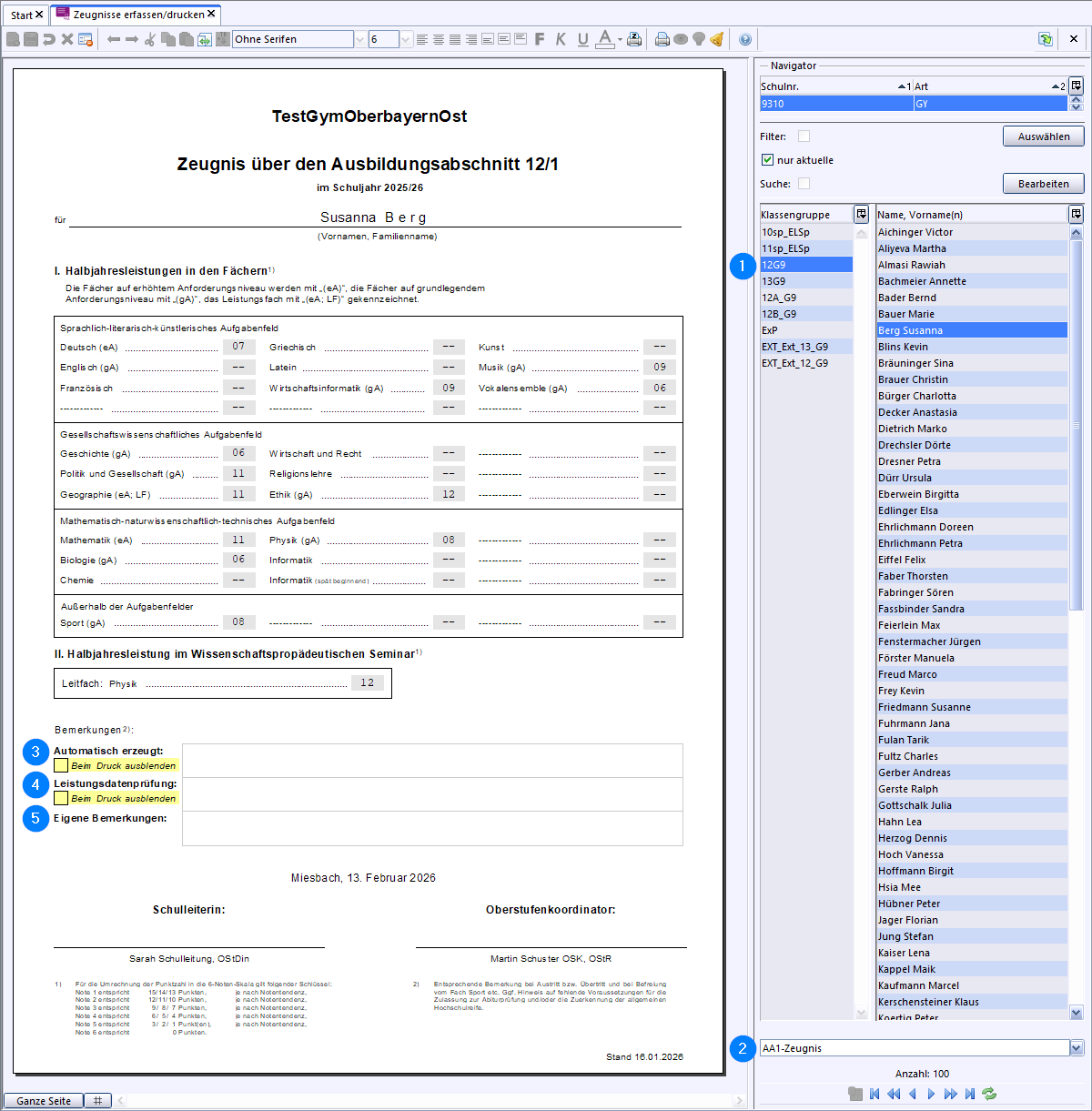 Das Zeugnis einer einzelnen Schülerin bzw. eines einzelnen Schülers kann über das