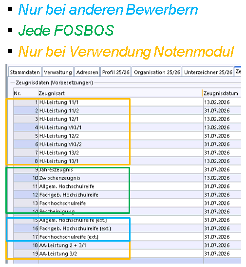 In ASV müssen für die FOSBOS diese Zeugnisarten angelegt werden.