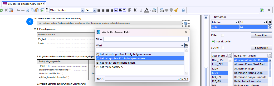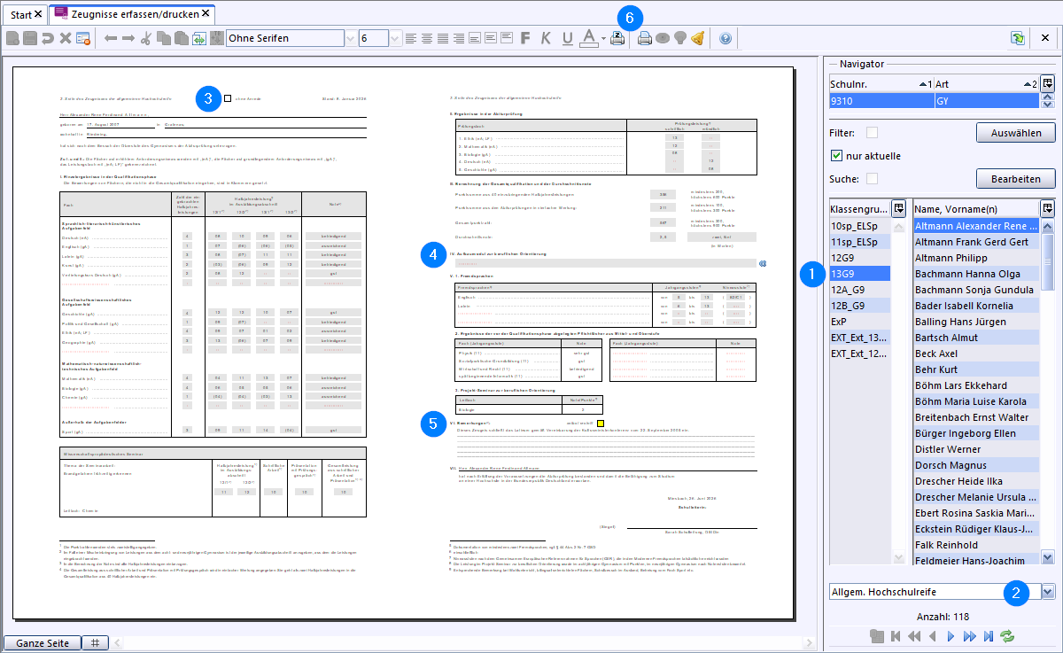Im Modul Zeugnisse können Sie die Abiturzeugnisse einsehen und fertigstellen.