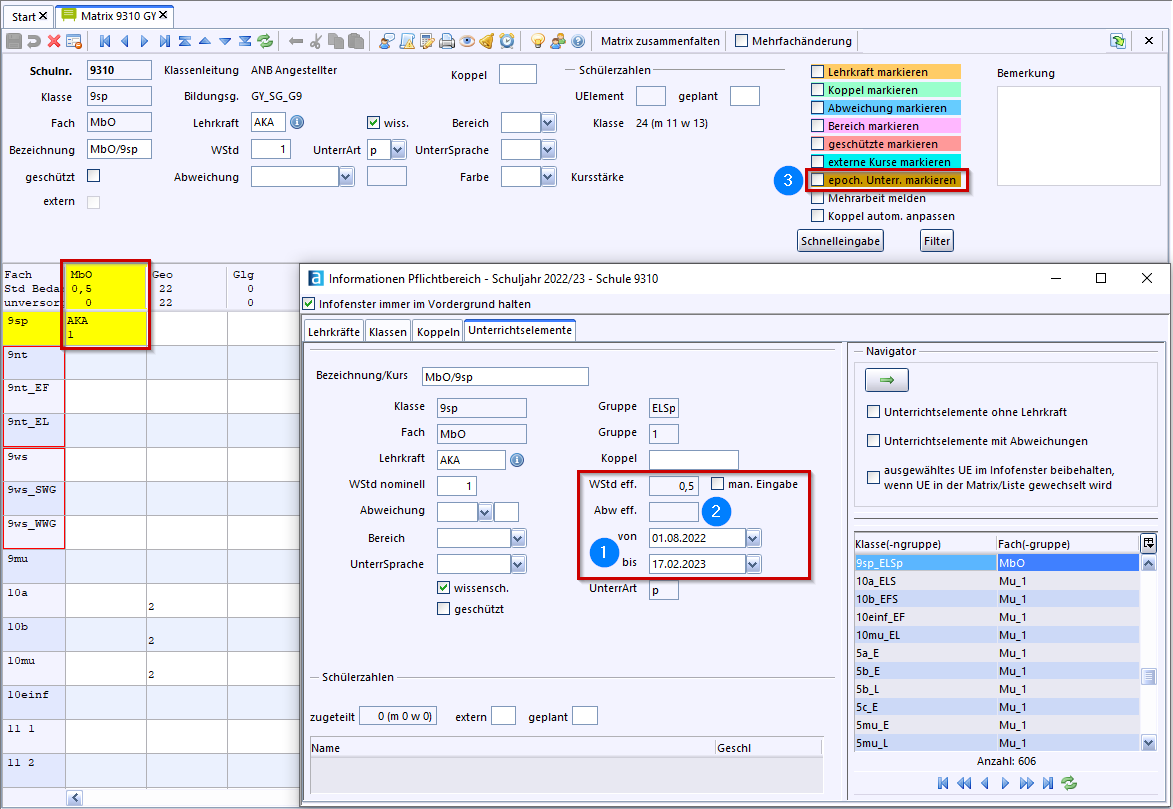 Daher gehen Sie für die Erfassung eines epochalen Unterrichtselements für eine Klasse aus mehreren Klassengruppen bitte wie folgt vor: