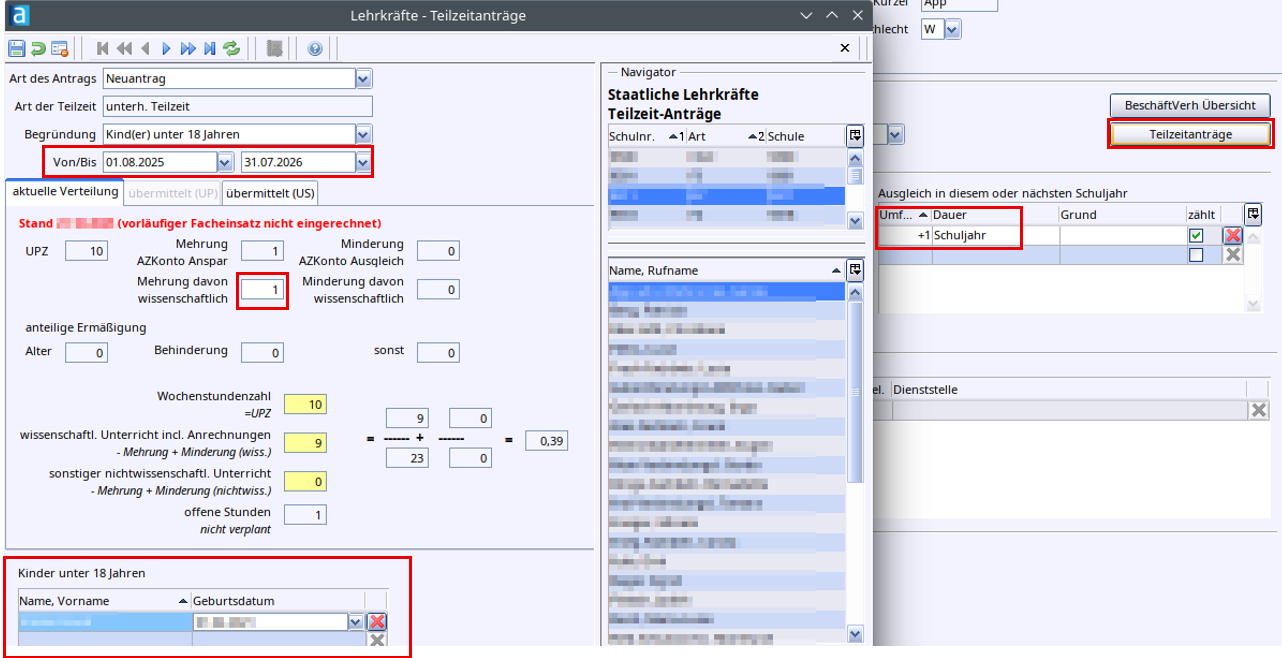 ACHTUNG: Für jede Teilzeit-Lehrkraft mit UPZ > 0 ist zur UP oder zur US ein Teilzeitantrag zu stellen. Zur UP muss unbedingt die Vorvereinbarung unterschrieben werden.